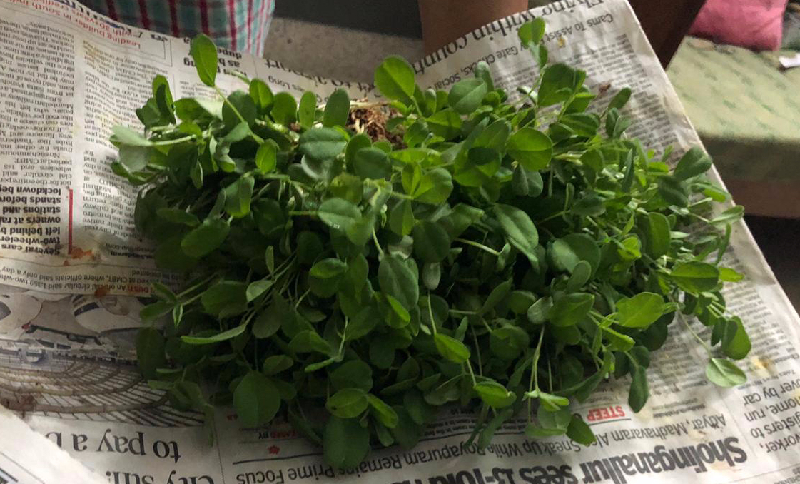Fenugreek leaves are very good for health since it contains most of the vitamins needed and also a good antioxidant. Not many people know that this herb can be grown within a week and can be cooked. In India, we usually store fenugreek seeds in kitchen and use it for daily use. we take it from kitchen, soak it overnight, plant the seeds and in a week the leaves are ready for harvest.