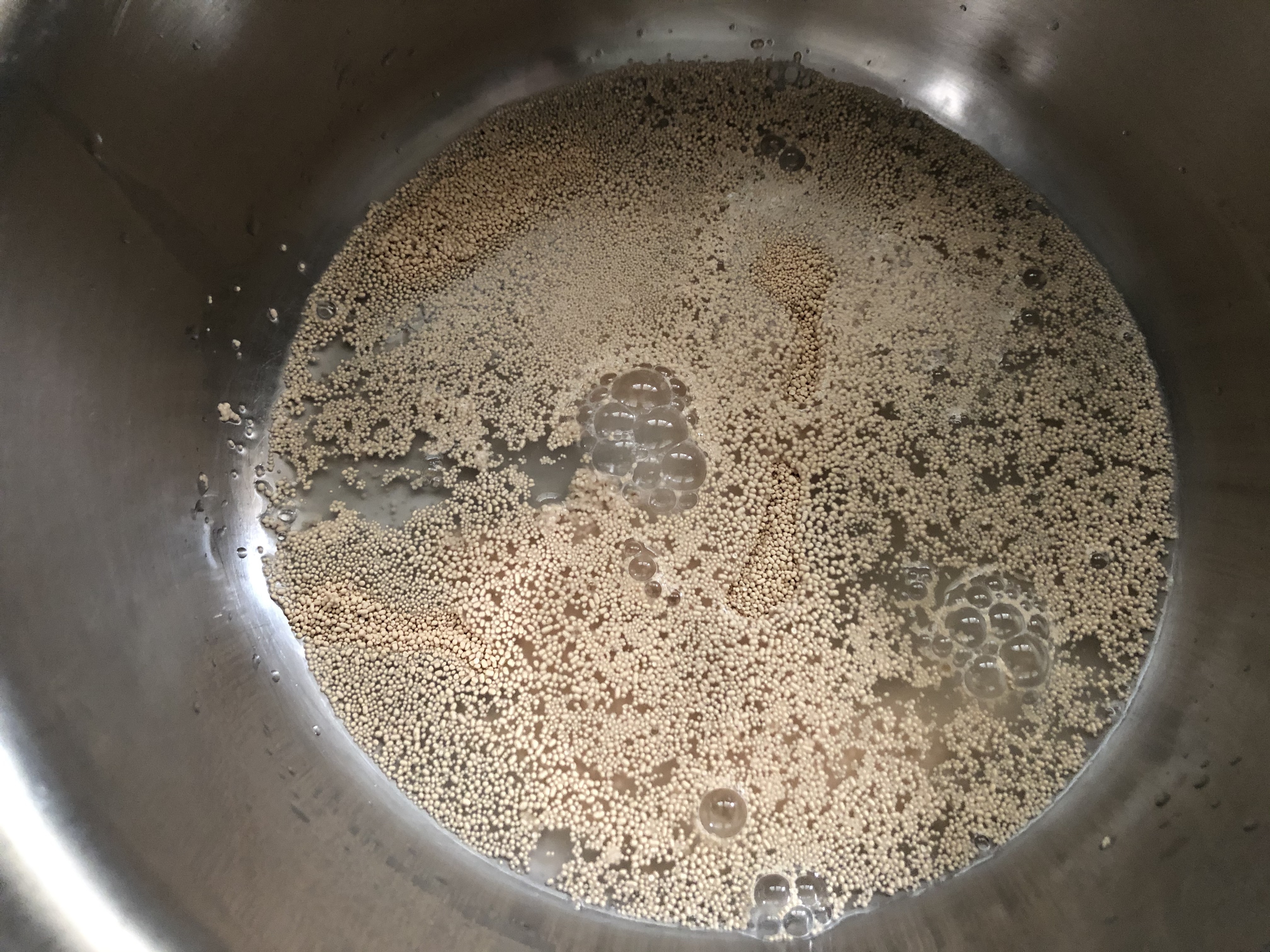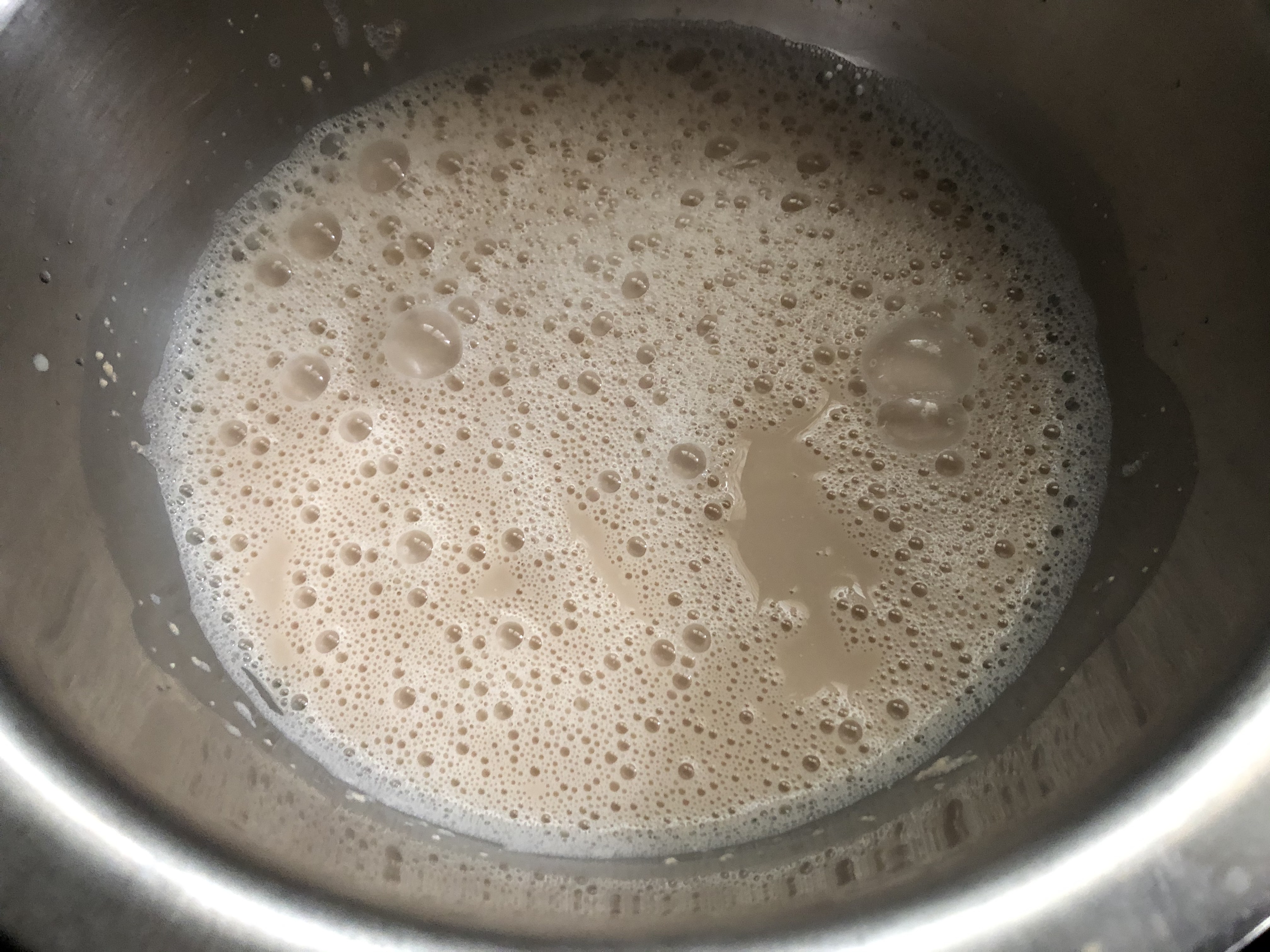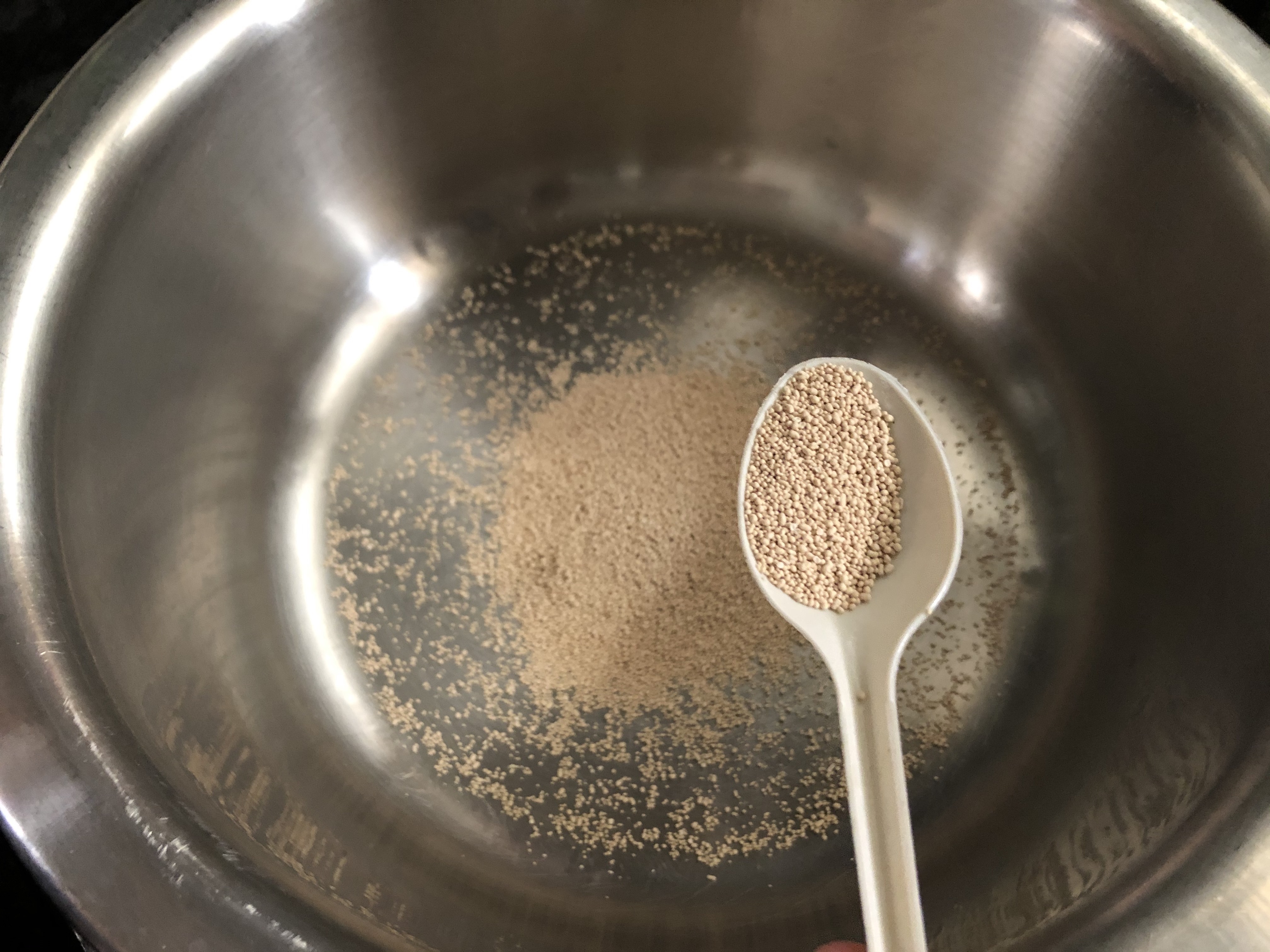 Add 4 spoons of yeast and warm water, mix it until it’s all dissolved. If you are using instant yeast, you can skip this step and add in it the flour directly.