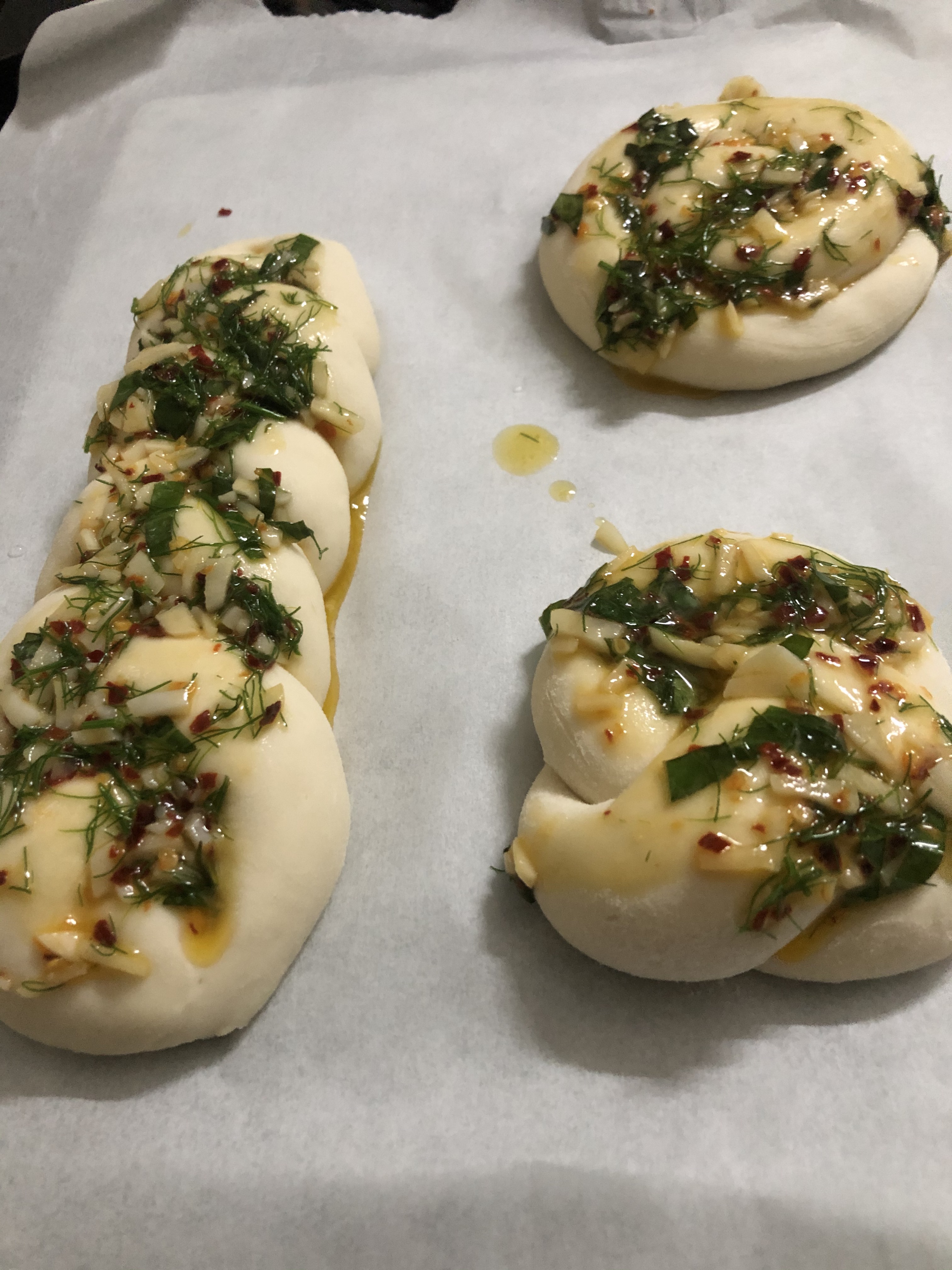 Oil – 2-3 spoons (and some more for applying after the dough is set)